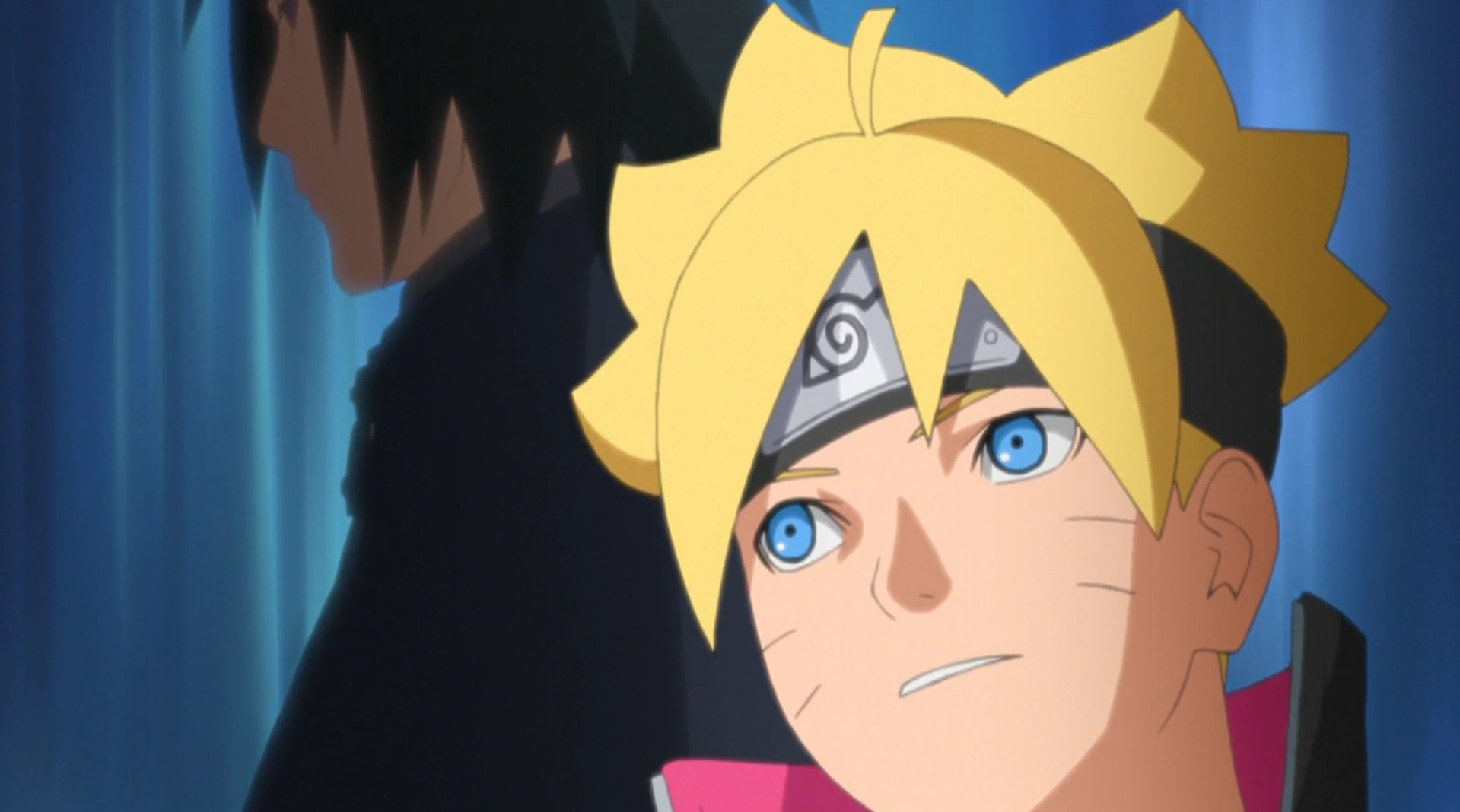 When Boruto wakes up, he learns that his father was captured while protecting all the villagers and that his mother was hospitalized in a failed attempt to rescue him. Upset, Boruto runs to Naruto's office, discarding the Kote along the way because it unfavorably reminds him of Momoshiki. In the empty office, Boruto finds Naruto's old jacket, which he puts on, now feeling guilty for all the things he said to his father. Sasuke follows him and invites Boruto to accompany him and the other Kage in rescuing Naruto, believing Boruto's skills would be useful. As they all enter through Sasuke's portal, Hinata arrives to stop Boruto from going, but after seeing how similar her son is to Naruto now, she decides to believe in him. Boruto asks Sarada and Mitsuki to look after everyone before following Sasuke into the portal.